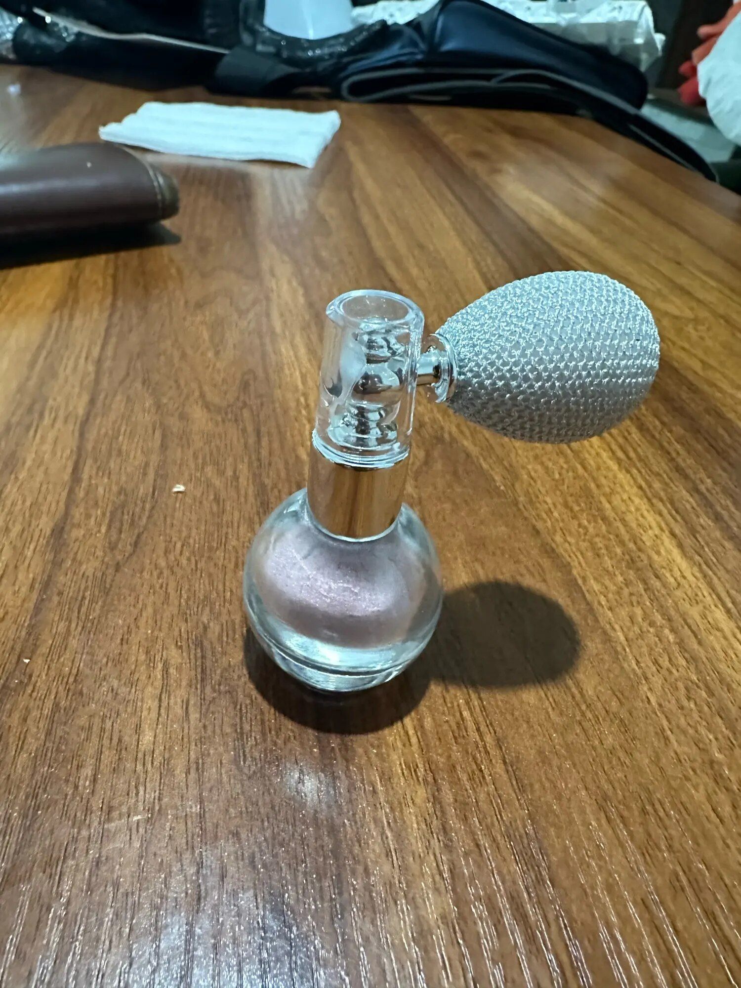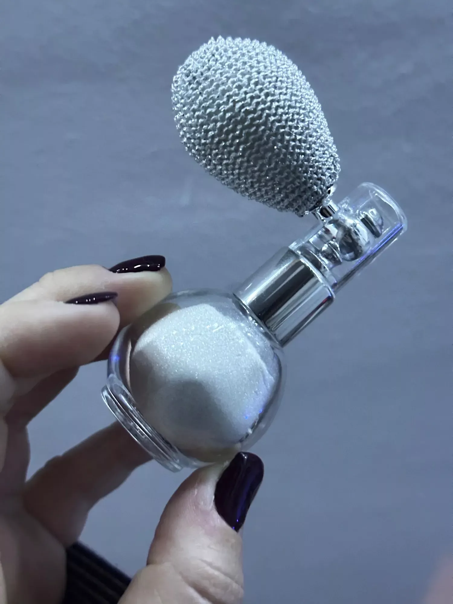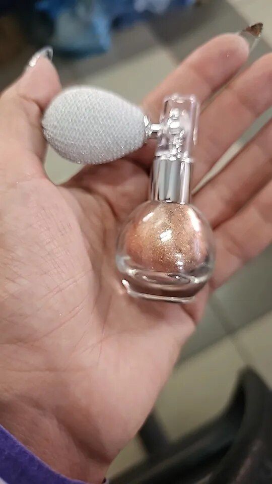 I was intrigued by the uniqueness of these products, and they didn't disappoint! While they're smaller than expected, the packaging is attractive and adds a nice touch to my vanity. It takes some practice to achieve the desired spray effect, but even if you apply too much, blending it out with a brush or sponge is effortless. I also enjoy using it as an eyeshadow to add sparkle and highlight. The soft baby powder scent is delightful and fades gradually.