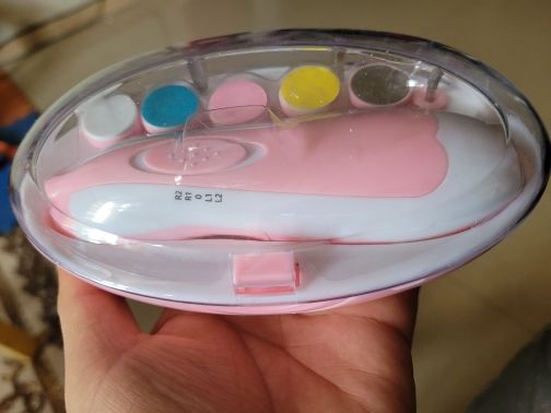 This nail trimmer is so easy to use, and it's safe for my little one. It has a light that helps me see better, plus six different attachments. A great buy!