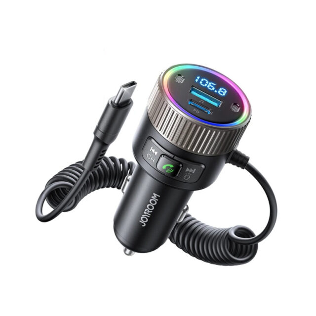 The 60W Bluetooth FM transmitter isn’t just any car adapter; it’s designed to enhance your journey. Whether you need to charge your phone on the go or make hands-free calls with exceptional clarity, this device does it all. Its compatibility with a wide range of vehicles and devices makes it an ideal choice for anyone looking to upgrade their car’s functionality. The bright, multi-colored LED ring adds a modern touch, while the built-in 1.5m coiled cable ensures that your charging is both convenient and clutter-free.