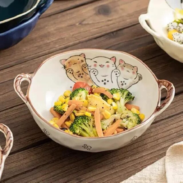 Not only does this bowl feature a charming cat design that brings fun to every meal, but it is also crafted from high-quality ceramic, making it both durable and eco-friendly. The 7.5-inch size is perfect for various meals, from a hearty bowl of ramen to a refreshing salad. The bowl’s handle makes it easy to transport hot dishes from the microwave or oven straight to the table, ensuring a hassle-free dining experience.