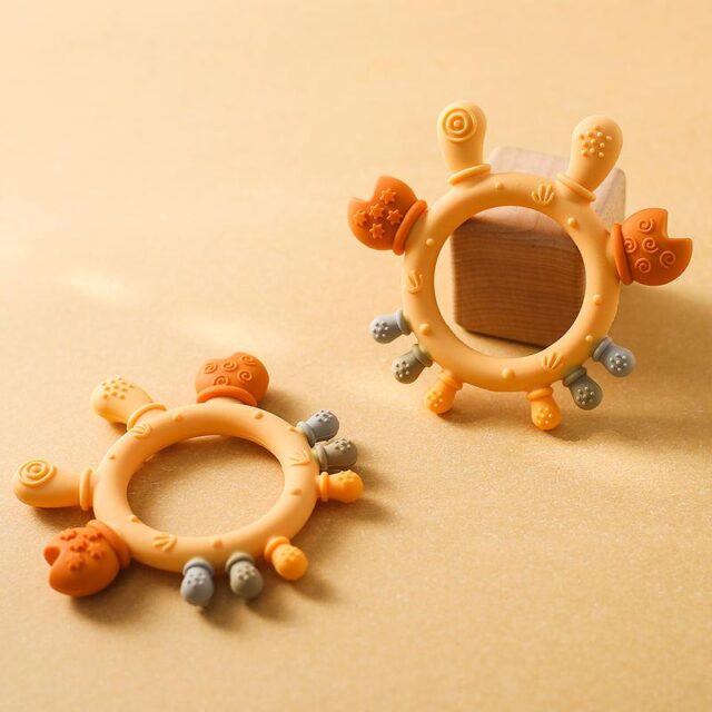 The Baby Teether Silicone Crab is a delightful and practical solution for soothing your baby’s teething pains. Its compact size and lightweight design make it easy for your baby to hold, chew, and enjoy wherever you go. The combination of silicone and wood not only provides different textures for sensory development but also promotes safe, natural relief. Whether at home, in the car, or at playdates, this teething toy is the perfect companion for your baby.