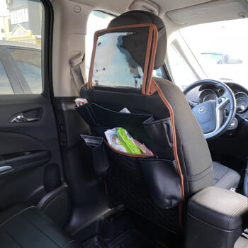 I won’t lie if I say this thing saved my nerves. My daughter is 6 and she’s a very messy kid… before, during trips with her, I literally went crazy: she constantly threw away toys and stained the tablet with dirty hands, asked me for a drink or was hungry. But with this seat organizer, I finally breathed a sigh of relief! All her toys, drinks and snacks are right in front of her, she herself takes them and puts them back. The tablet is stored in a special pocket and stays clean all the way. It’s a wow! Highly recommend this car organizer for seat back!