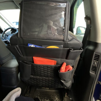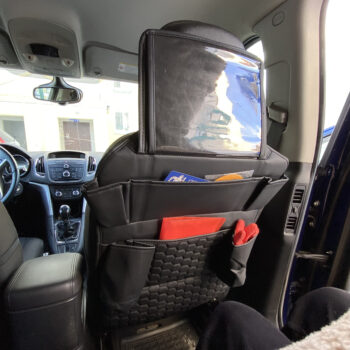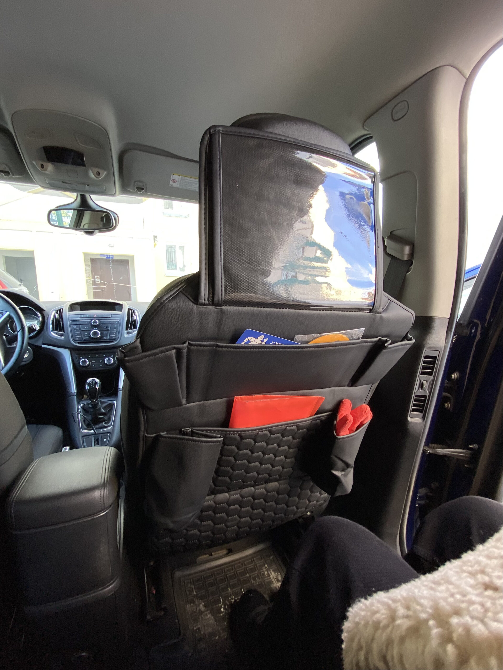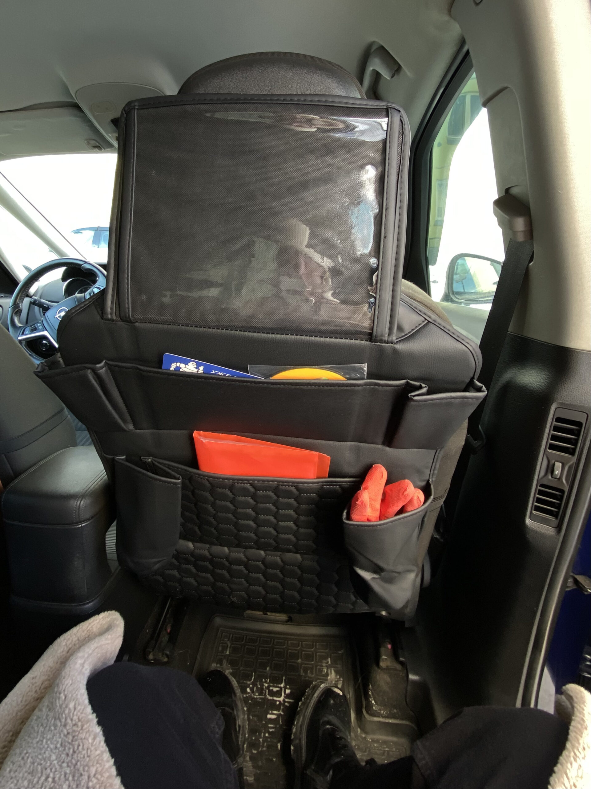 This backseat organizer is a game changer. Easy to install, sturdy and holds everything in place even on bumpy.