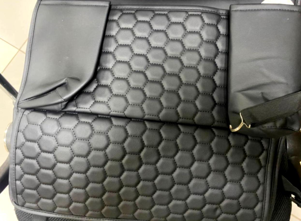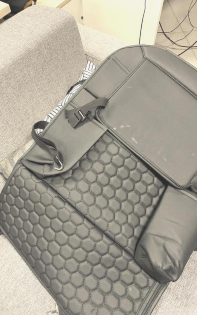 This seat-back organizer is waterproof and easy to clean. Plus it looks stylish with its eco-leather finish.
