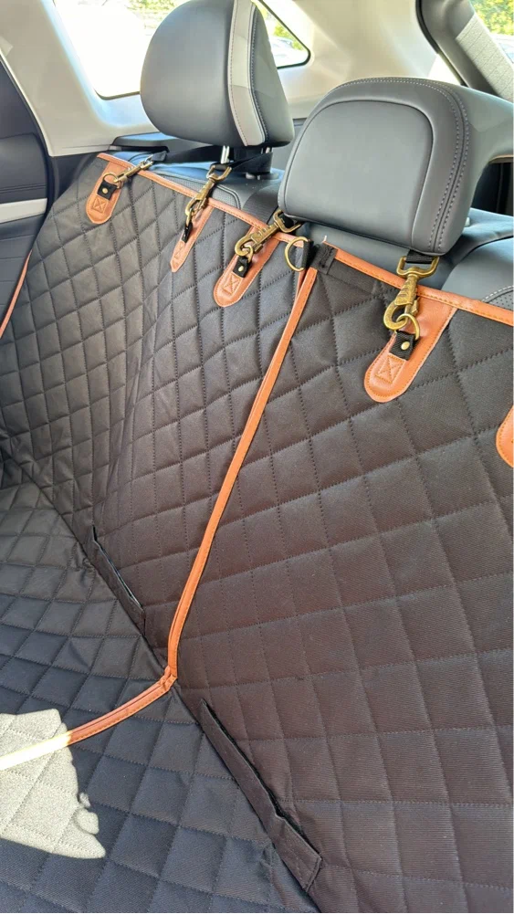 This product exceeded my expectations! It fit perfectly in the back of my Ford Escape, buckled nicely around each headrest, and doesn’t slip and slide when my doggo is hanging out on it. Offers good protection for my car seats and looks sleek too. Highly recommend!