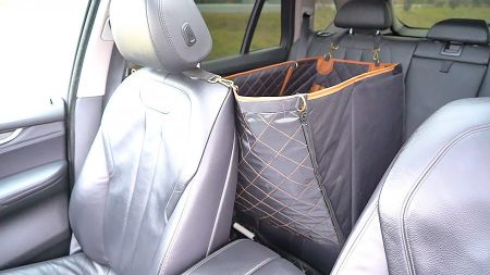I recently purchased this Travel Buddy dog car hammock for my BMW and I couldn't be more pleased with my purchase. It seems to be very durable and looks really nice in my car interior. And it works just great to protect my car seats from any messes my dogs may create! It is also foldable and portable with two carrying handles, making it easy to store and take on the go. Overall, I think that this Travel Buddy car hammock is an excellent investment for any dog owner who loves to travel with their pet(or pets).