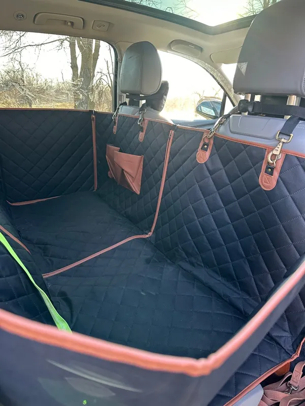 I can't imagine using any other product to safeguard my leather seats from my dog! It prevents her toys from falling onto the car floor. The non-slip underside ensures the cover stays in place, giving her better stability. It's also water-resistant and features a pocket where I store her essentials like a collapsible water bowl and leashes.