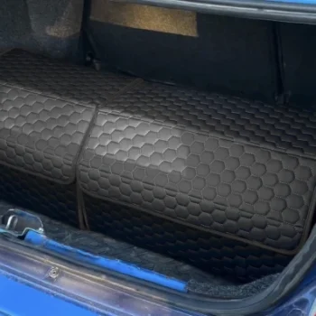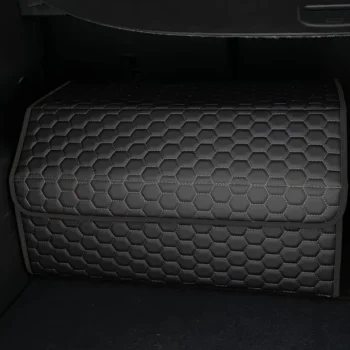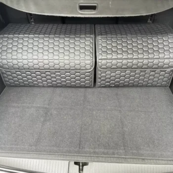 Our trunk organizer features two robust eco-leather handles on its sides, firmly stitched and reinforced with metal fasteners for durability. These handles make it effortlessly portable, ensuring smooth transportation between your car, home, and garage.
