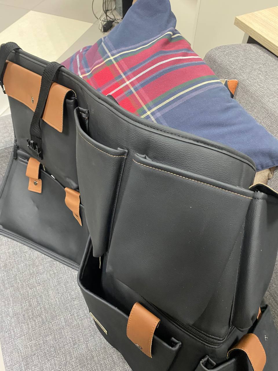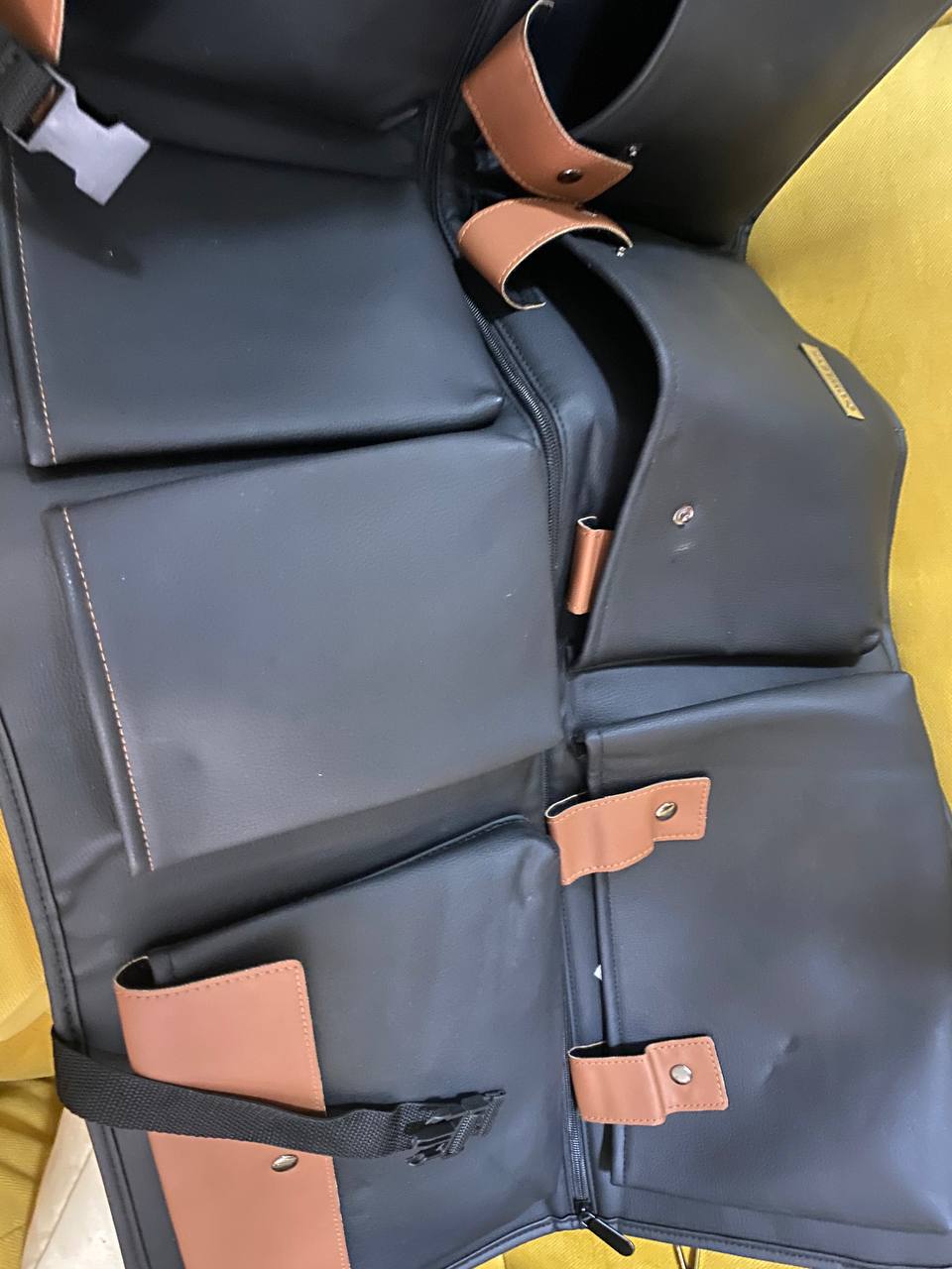 Metal buttons, strong PVC buckles, and solid textile headrest straps securely hold our SUV car trunk organizer and its pockets, ensuring a snug and safe organization that stays in place on the go.