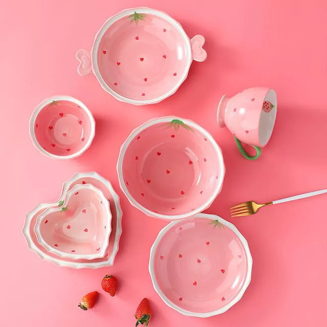 Bring a touch of sweetness and warmth to your table with our lovely pink, heart-shaped strawberry ceramic bowl. Designed for those who cherish the beauty in everyday moments, this exquisite piece of tableware elevates your dining experience with its hand-painted strawberries and enchanting design. Perfect for serving rice, desserts, noodles, or enjoying a hearty breakfast, it adds a lovely pink flourish to your meal times.
