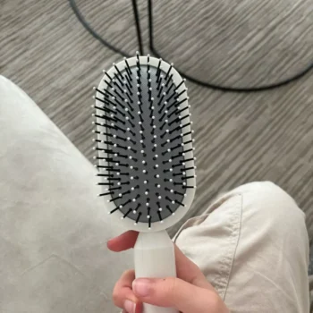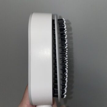 The anti-static material of this brush is truly impressive! My hair used to be frizzy after brushing but not anymore! Now my locks are smooth and shiny all day.