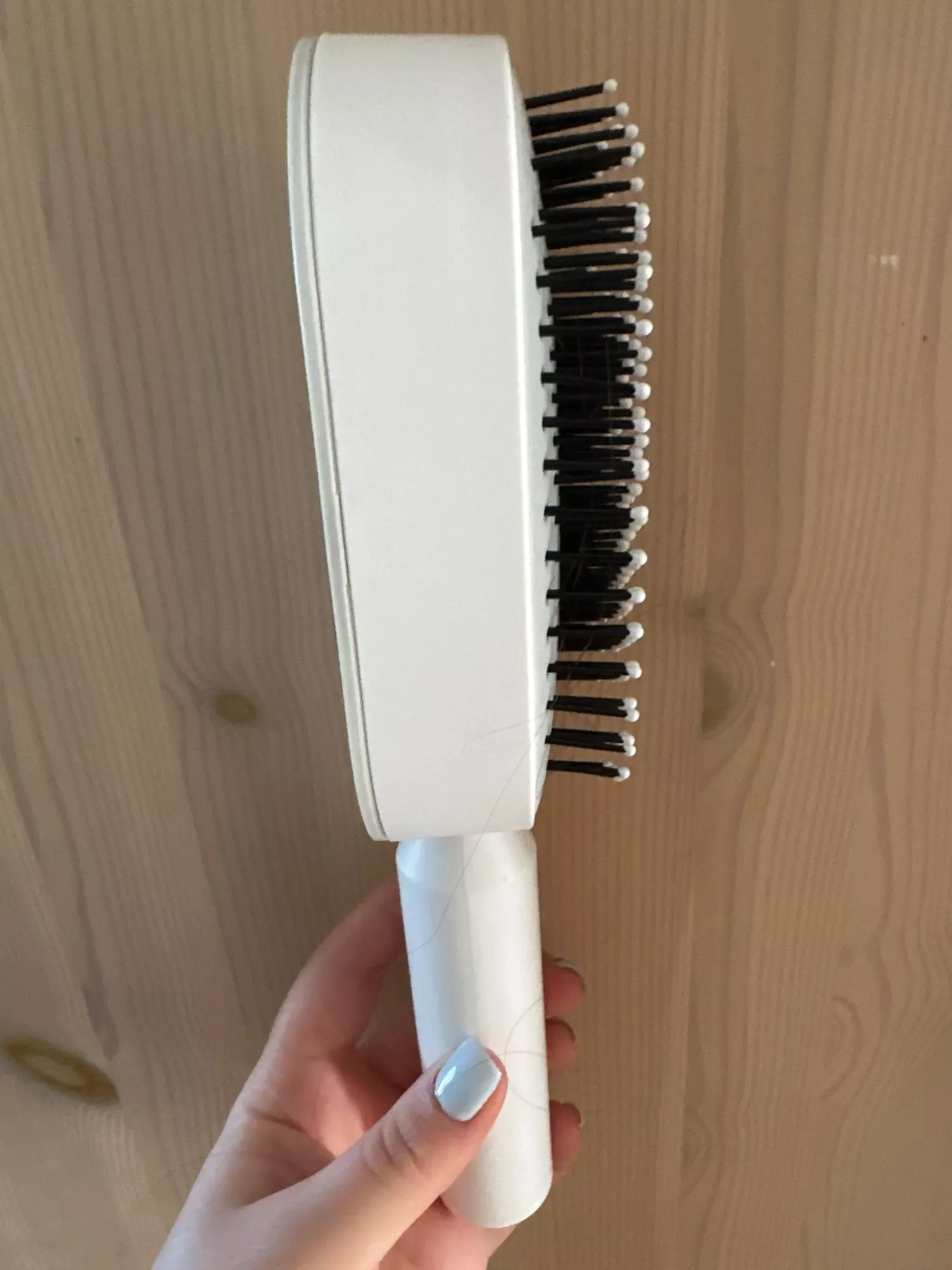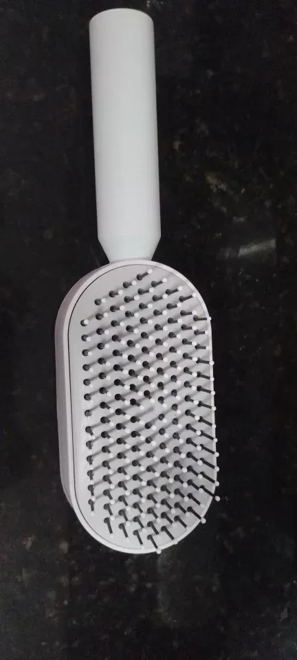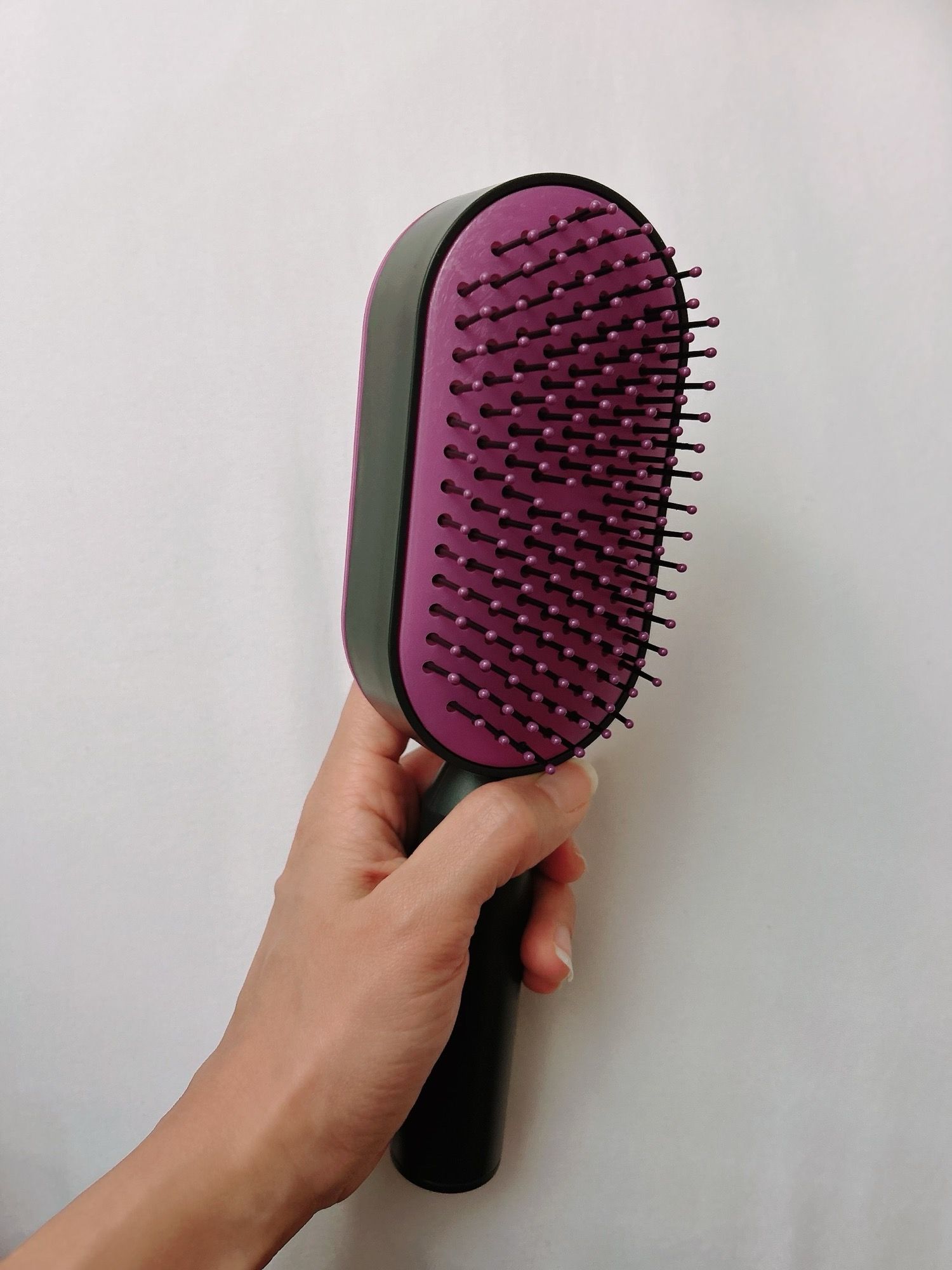 This brush has been an absolute game-changer in my daily grooming routine. It's so easy to clean with its one-key self-cleaning system - just push out trapped hair with a click! I've noticed less breakage since using this brush as it detangles without pulling at my strands.
