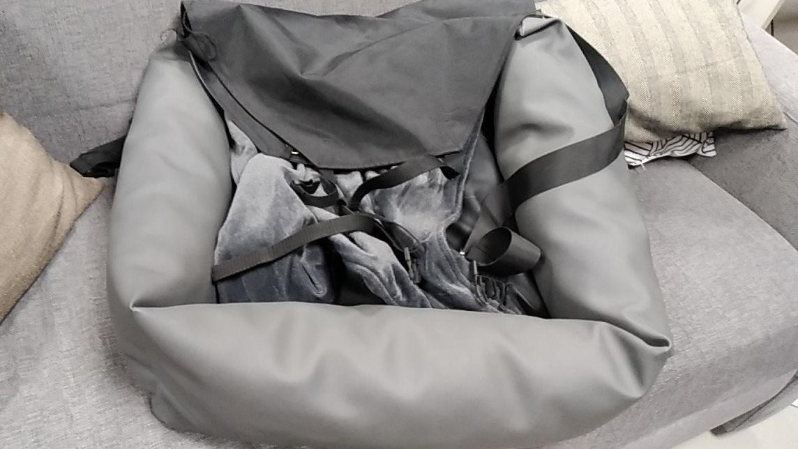 It's compact yet super comfortable. My dog loves curling up in it during our road trips. The adjustable straps ensure a perfect fit, and the soft padding keeps him relaxed.