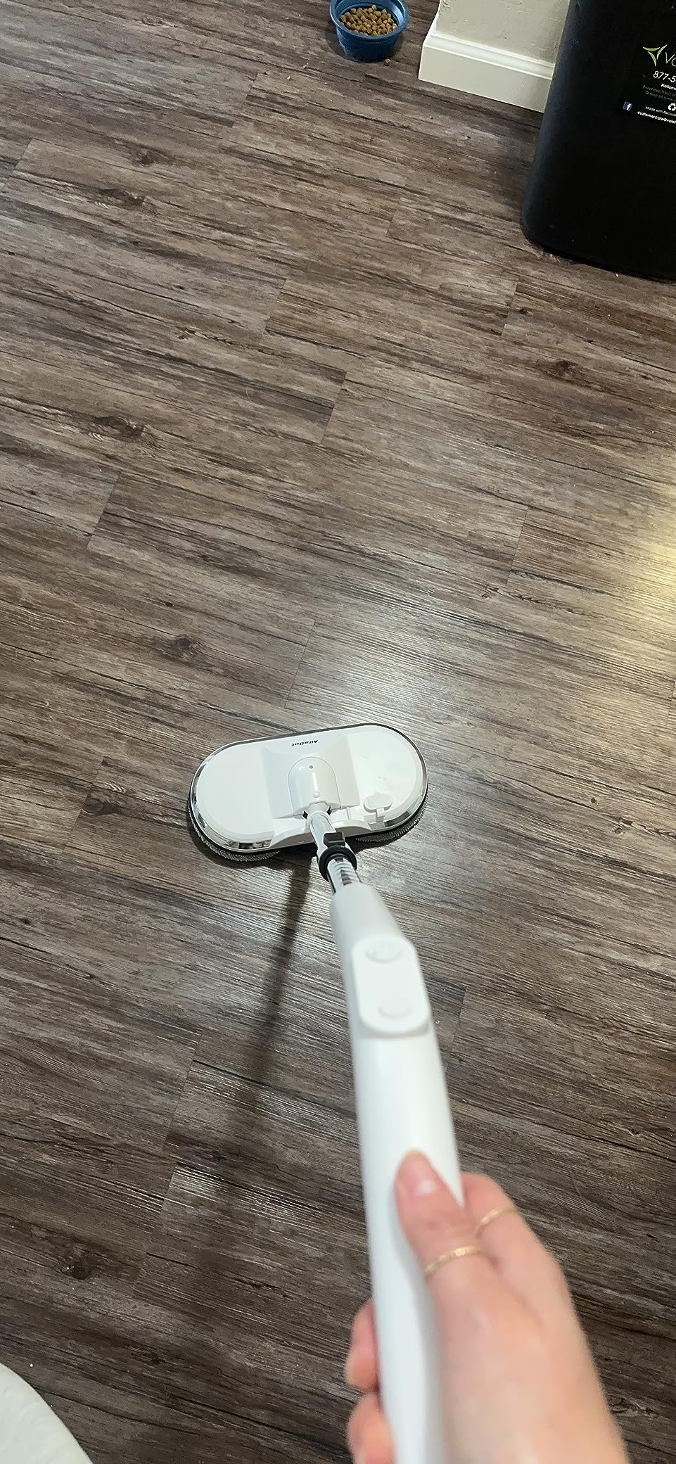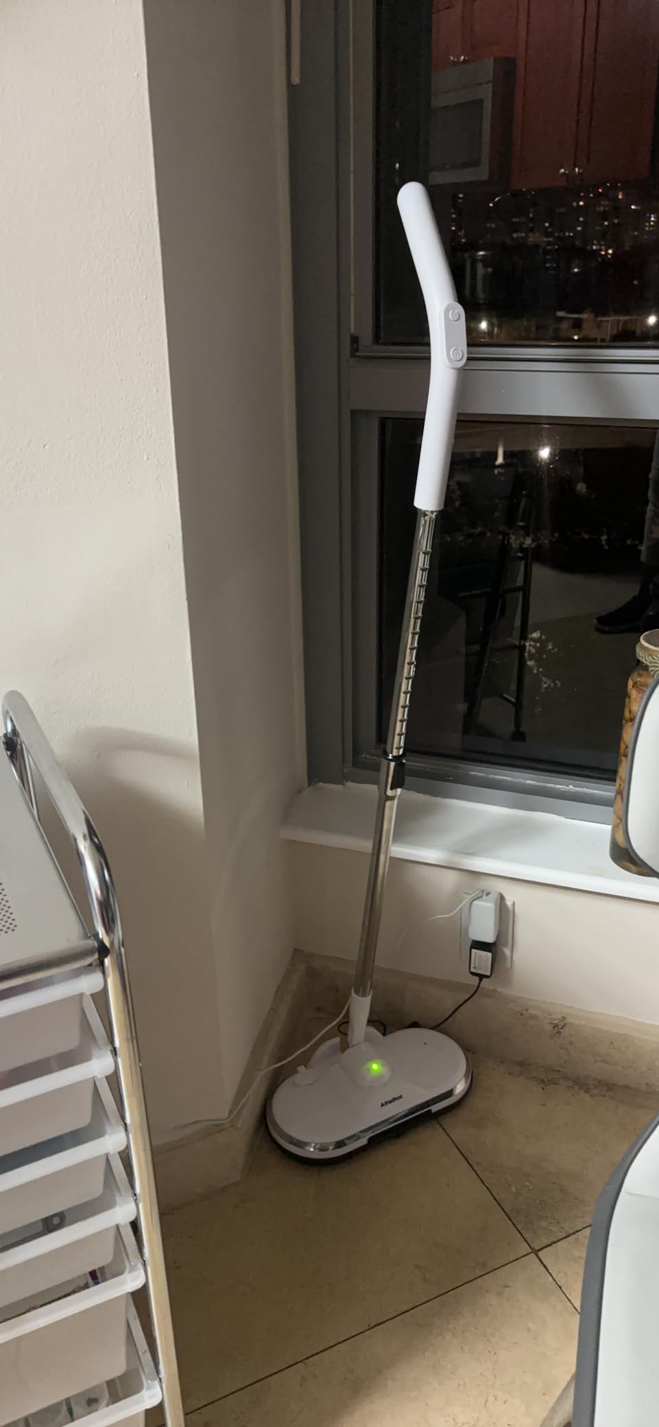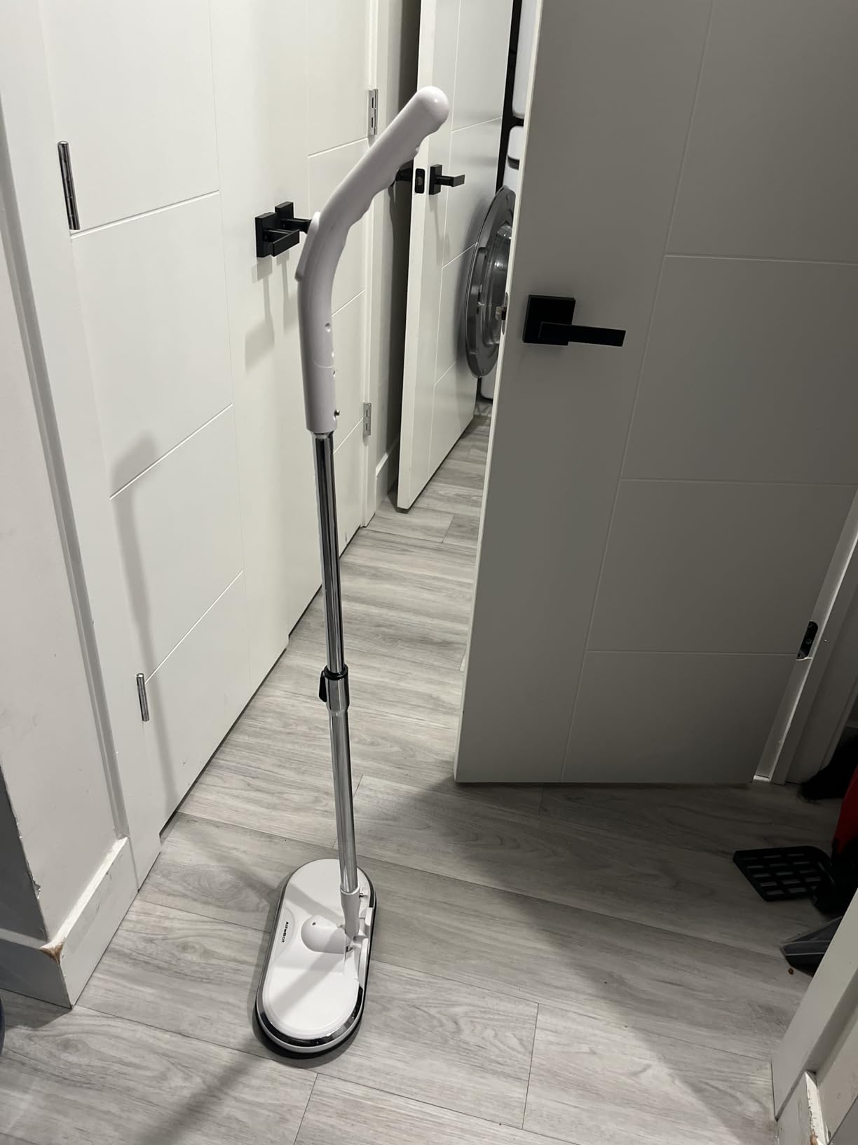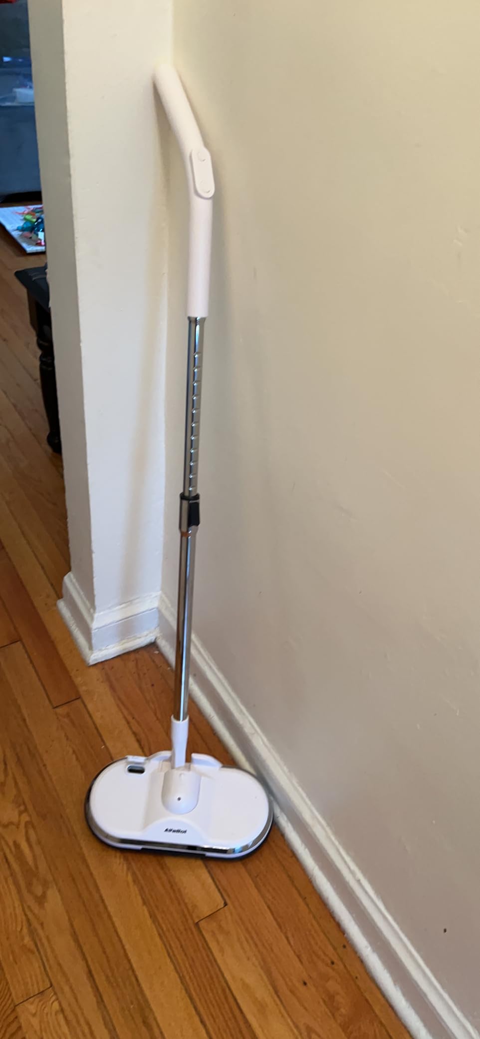I've been using this electric mop for weeks, and it's fantastic. The cordless feature makes it easy to maneuver, the spinning heads are highly effective, and the water spray comes in handy for sticky situations. It's lightweight, making it easy to carry up and down stairs.