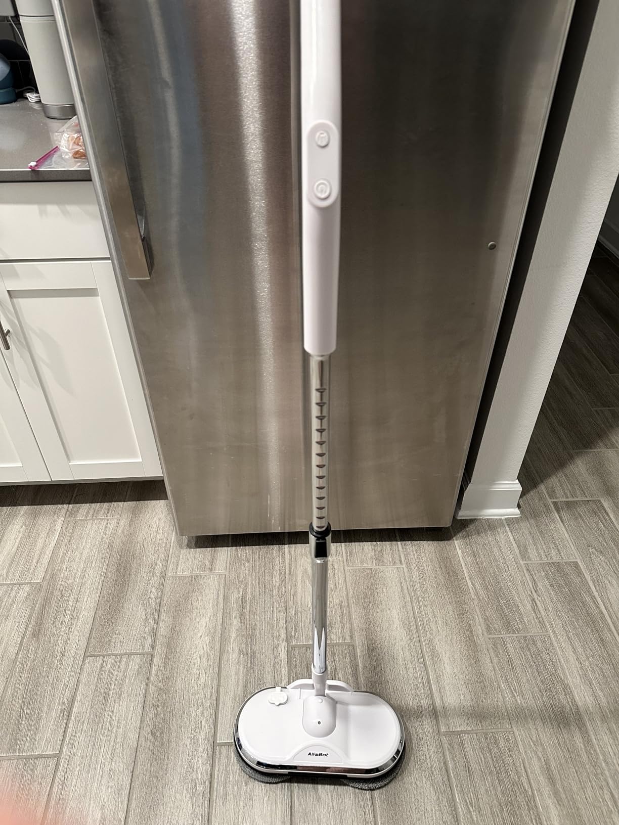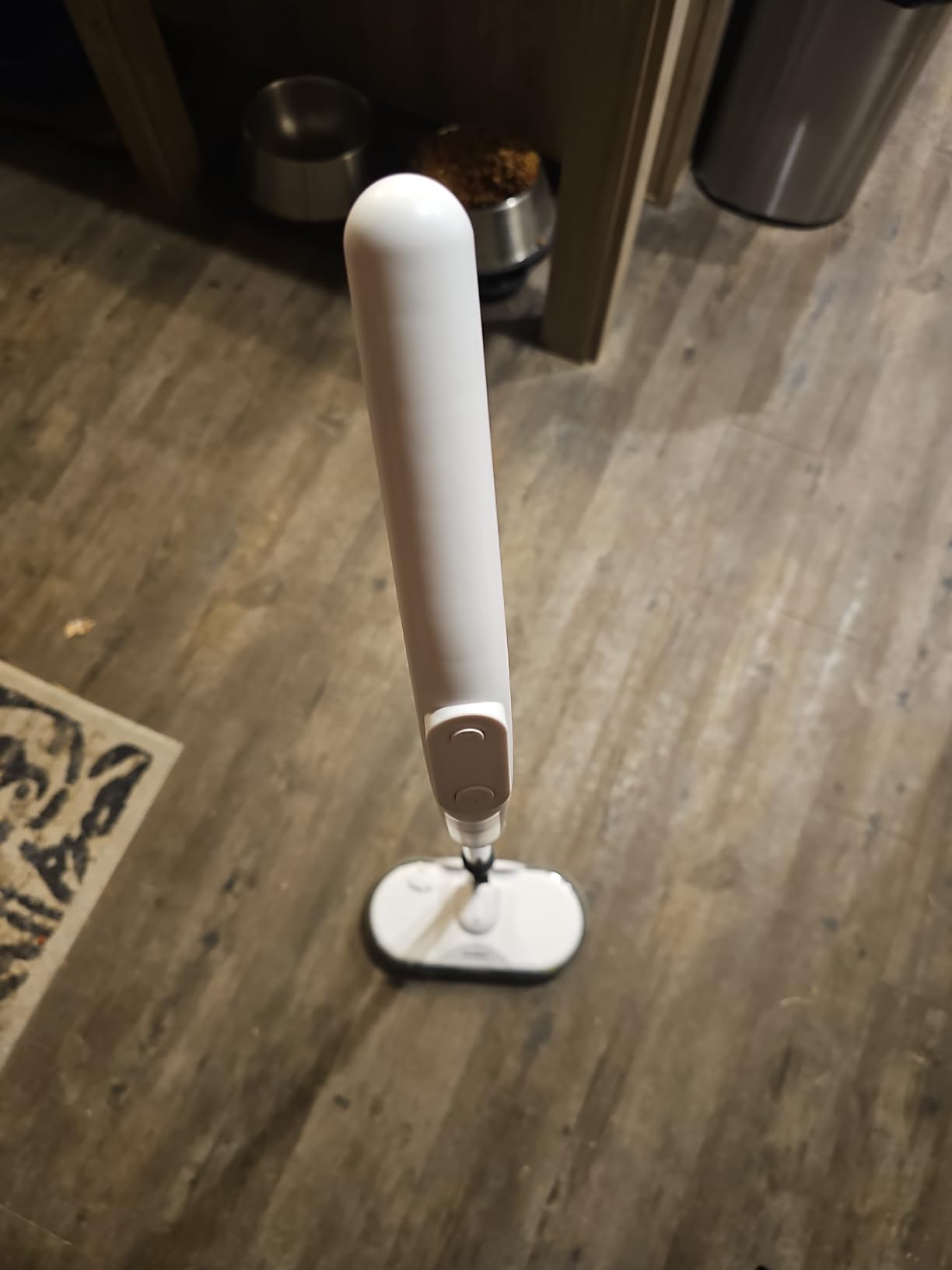I can't praise mop enough. It's cordless, so no more unplugging and plugging in, and the spinning heads do a great job on my floors. The water sprayer is a nice touch for sticky spots, and the LED light ensures I see every speck of dirt.
