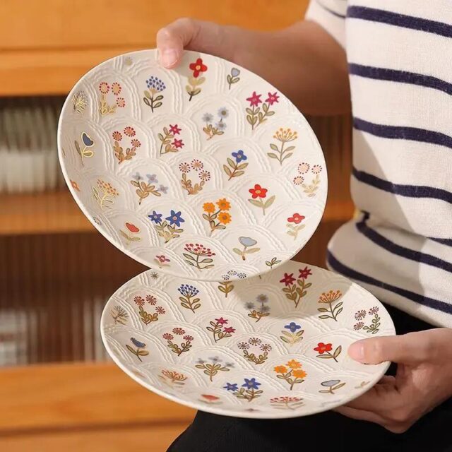 The Elegant Floral Ceramic Plate is not just another dish—it’s a work of art. The delicate underglaze floral pattern adds a refined aesthetic, making it a statement piece on any table. Its versatile design means it fits seamlessly into any style of home décor, whether you’re serving a hearty breakfast, an elegant dessert, or a plate of pasta. The timeless European style ensures this plate will stay fashionable for years to come.