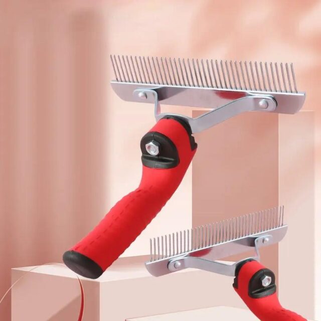 Unlike ordinary dog brushes, this rake comb is specifically designed for large dogs with thick or double coats. The wide, stainless steel teeth can easily glide through heavy fur, ensuring no tangle or loose hair is left behind. Plus, the gentle design ensures your dog’s skin won’t be scratched or irritated during grooming. This comb offers a professional grooming experience right at home, helping you keep your dog’s coat looking shiny and healthy.