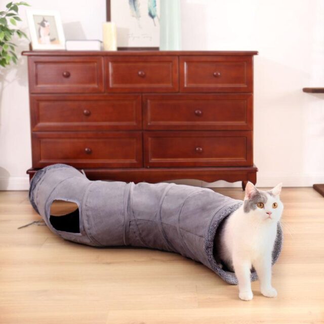 Whether your cat loves to hide, pounce, or simply explore, this play tunnel satisfies all of their natural instincts. The crinkle sound adds an extra layer of excitement, encouraging your cat to jump in and out while stimulating their curiosity. With the added fun of a dangling ball toy, this tunnel turns playtime into an engaging experience they won’t get enough of.