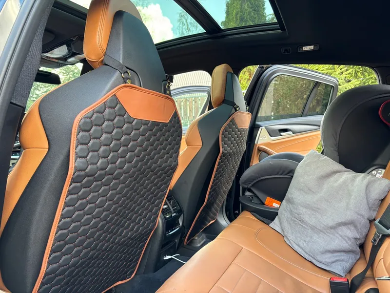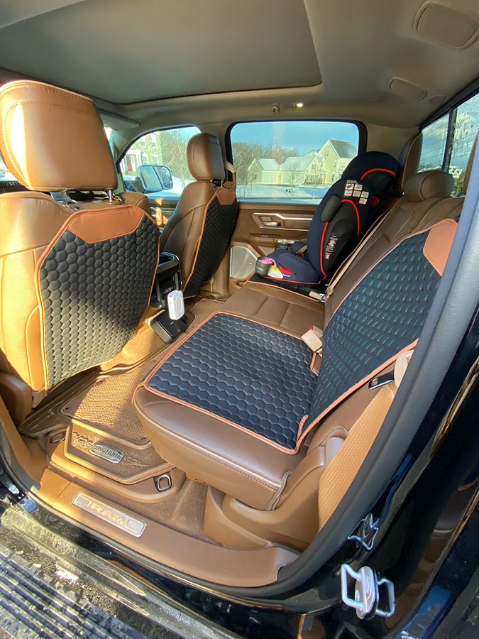 This car seat back protector has been a game-changer for us. Not only does it protect our seats from the kids' dirty shoes, but its premium eco-leather material also adds an element of sophistication to our car's interior. The non-slip bottom is another feature we love; no more constant adjusting or worrying about it slipping off!