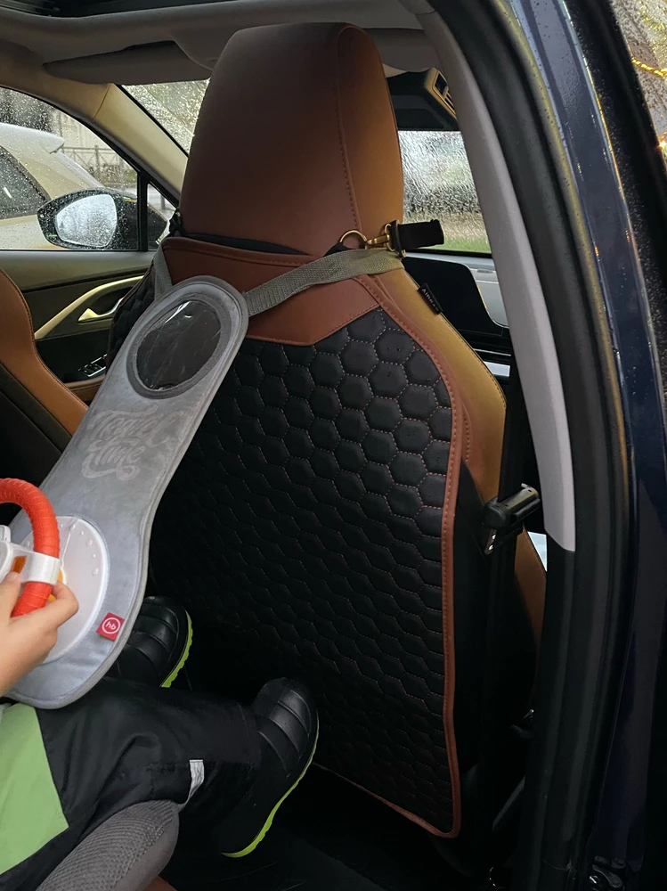 This car kick mat is a mast-have accessory for families who travel by car with kids in the back seat.