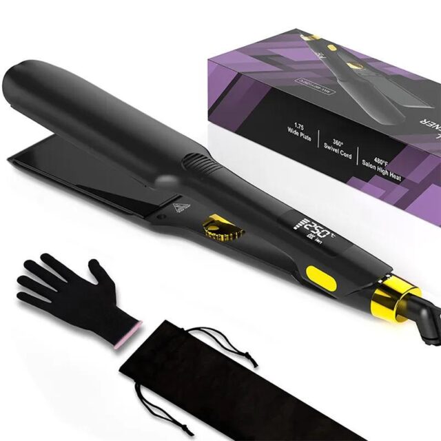 • Effortless styling with wide plates that accommodate more hair in one pass, reducing styling time.