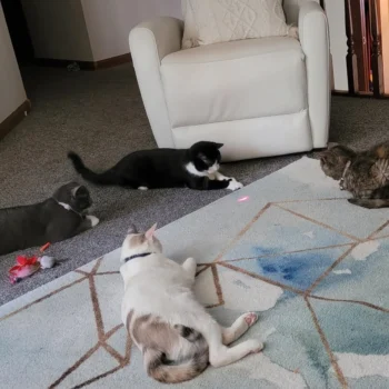 This interactive toy has really helped curb destructive behavior in our feline friend by keeping him busy with fun games of chase-the-laser-light. Super easy setup too!