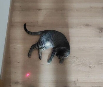 Our kitty used to be quite lazy but not anymore thanks to this wonderful gadget! She can't resist chasing after the light - it provides great mental and physical stimulation for her.