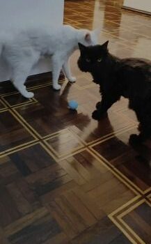 Initially, my cats were a bit startled by the ball's self-rolling antics, but once they got used to it, they had a blast playing with it. Unfortunately, it took an unintended journey down the stairs and is now missing in action. Hopefully, we'll locate it soon.