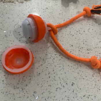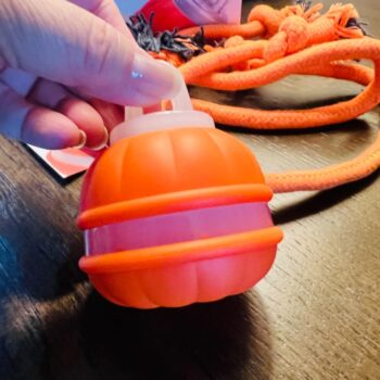 This interactive dog toy has become an instant hit at our place! Our Shih Tzu simply cannot resist chasing after this moving ball with chirping sounds coming out of it. And when she gets tired of playing chase-the-ball game, she would tug at those long tails attached to the ball – adorable sight!