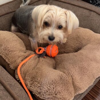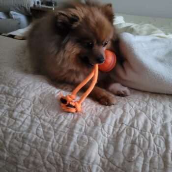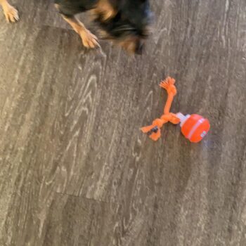 A must-have for any small dog owner. This rolling ball provides endless fun.