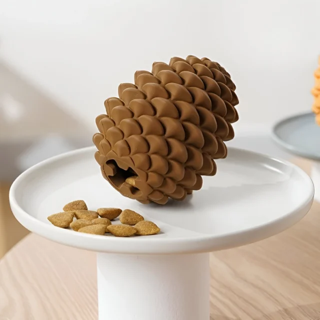 This unique toy is designed to satisfy both your dog’s natural chewing instinct and their need for mental stimulation. Its innovative design, resembling a pine cone, makes it stand out and captures your pet’s attention. It’s not just a toy – it’s an interactive challenge that rewards your dog with treats while also promoting dental health. The durable, flexible rubber material ensures the toy lasts through hours of fun, while the treat-dispensing feature keeps your dog motivated to play.