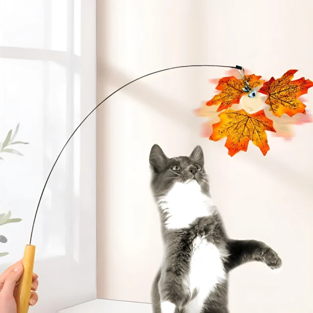 Unlike other cat toys, the Interactive Rotating Leaf Cat Teaser Toy requires no batteries, offering a more eco-friendly and hands-on approach to pet play. The unique design and durable materials ensure that this toy can stand up to even the most energetic cats. The combination of a sturdy wooden handle and a flexible steel wire makes it easy to maneuver, giving you complete control over the fun. It’s a high-quality pet product that promises to provide countless hours of entertainment.