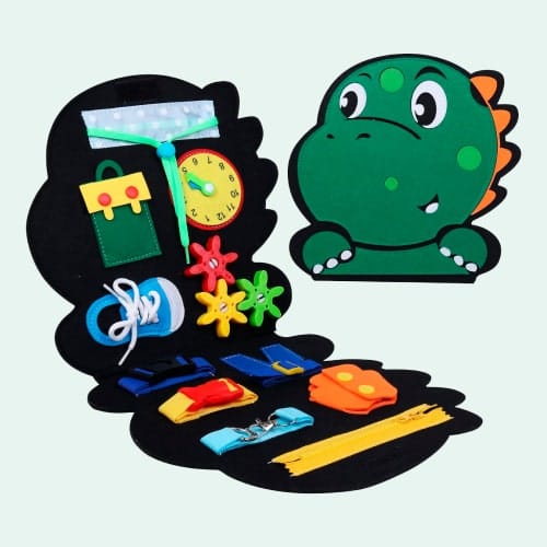 This toy has been a fabulous addition to our home! It's helped my child improve their hand-eye coordination and fine skills. 👍My toddler can't get enough of this board. She loves the activities like tying shoelaces and snapping buttons. A great buy!
