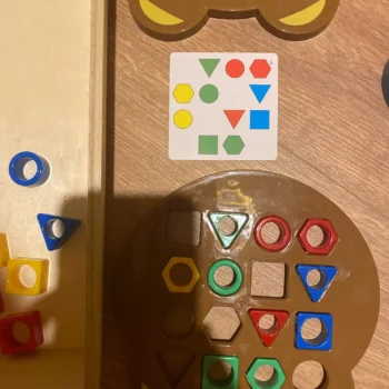 The Montessori Matching Puzzle Board Game has quickly become one of our favorites at home. Its focus on promoting color & shape recognition in such a fun way makes learning enjoyable for my little ones!