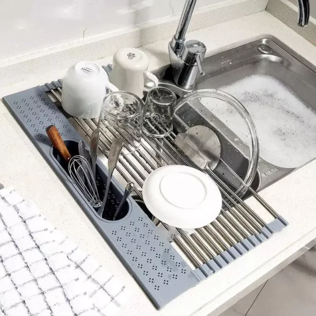 Experience the blend of functionality and style in your kitchen. Order now and elevate your kitchen’s efficiency and aesthetics with our Multi-Use Adjustable Silicone Over Sink Drying Rack!