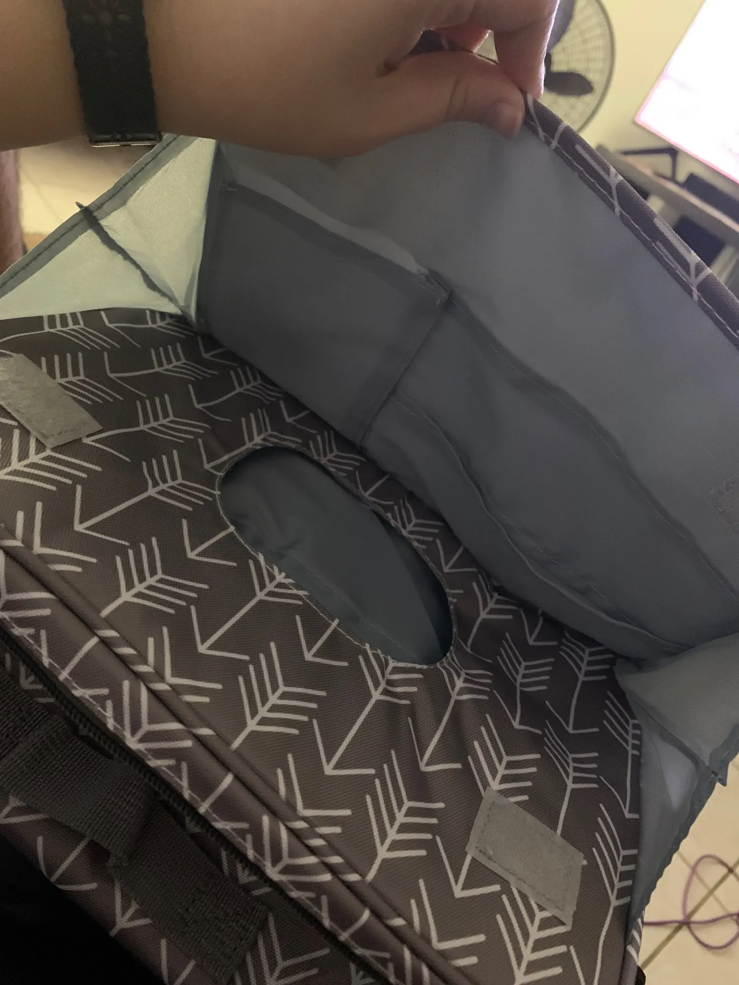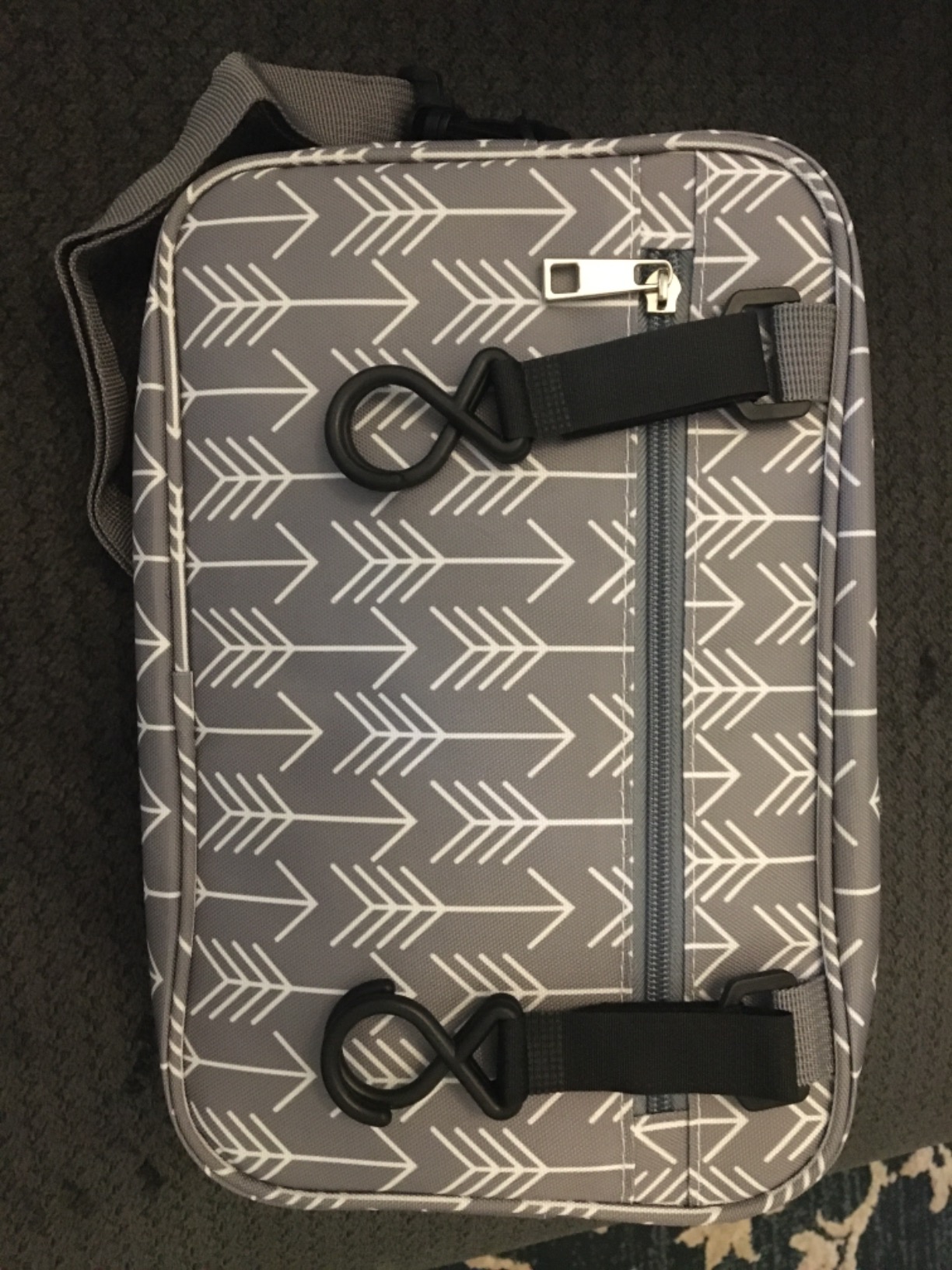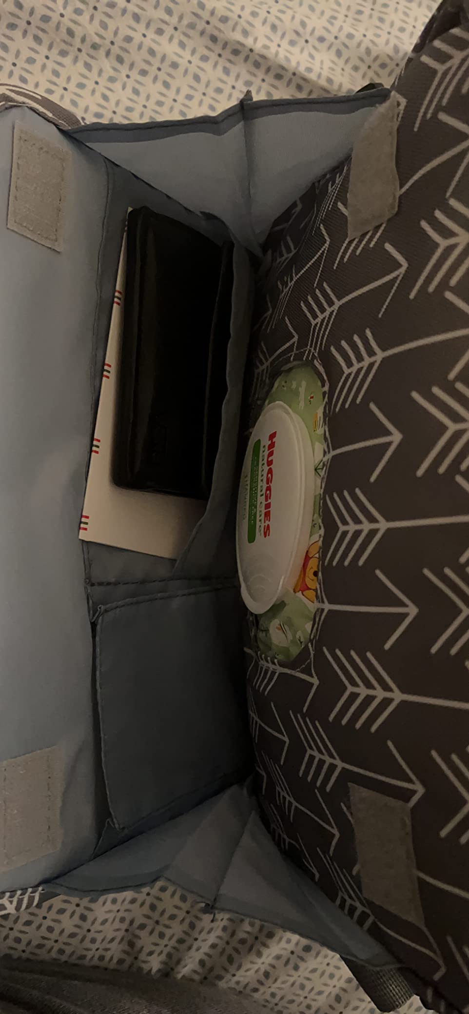 Such a cute portable diaper bag. Got it for Disney to avoid carrying a big bag or backpack all day. Perfect with lots of space for 6 diapers, a bag of wipes, some snacks, and our Epi pens.