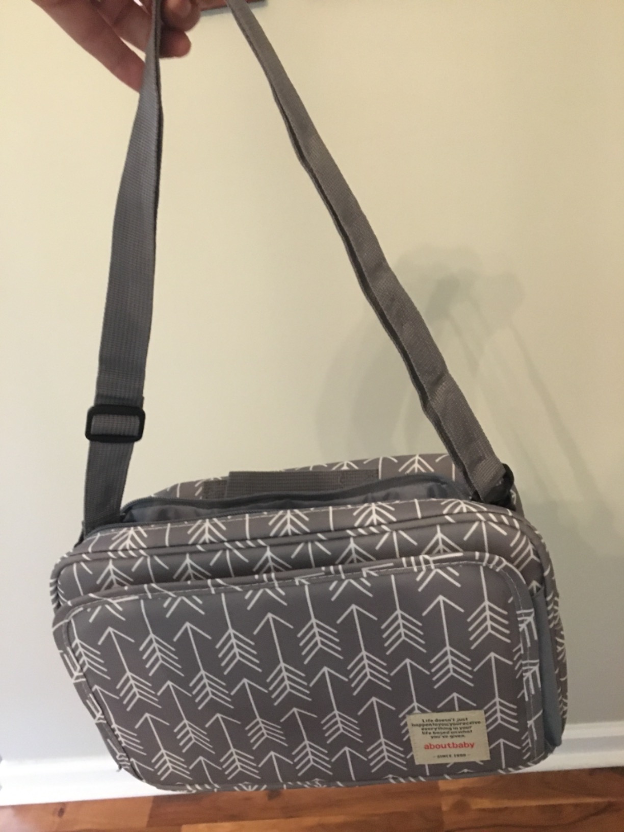 Little diaper bag that’s perfect for on the go. Now that my daughter is older, I just carry it in my car with diapers and wipes. Has a spot for your phone and credit card too.