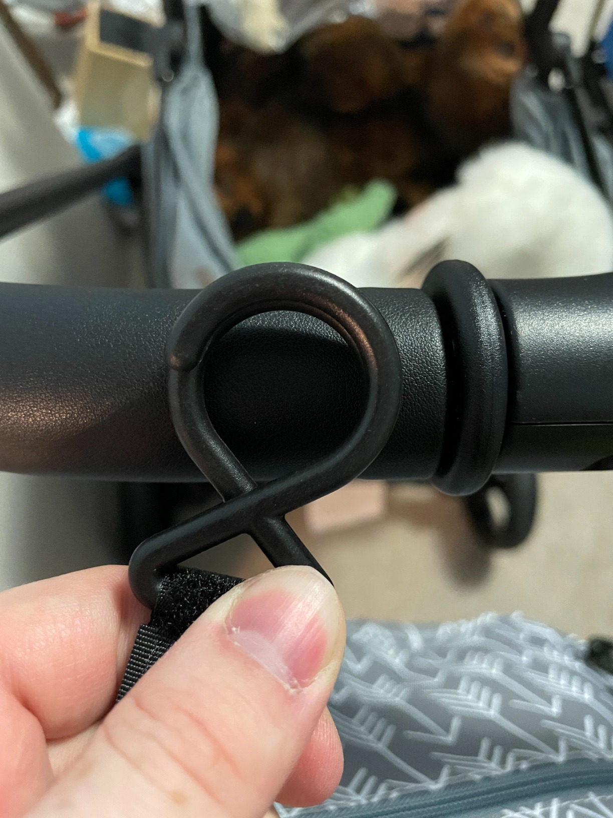 Searched for a compact bag for my dog stroller that zips closed for security and to keep rain out. Wanted extra storage that's safe and easy to access, without taking up too much space. This bag hangs perfectly from the handlebar, fitting my dog treats, pick-up bags, cell phone, keys, wallet, while keeping them dry and secure. Ideal for my needs, especially since it's detachable.