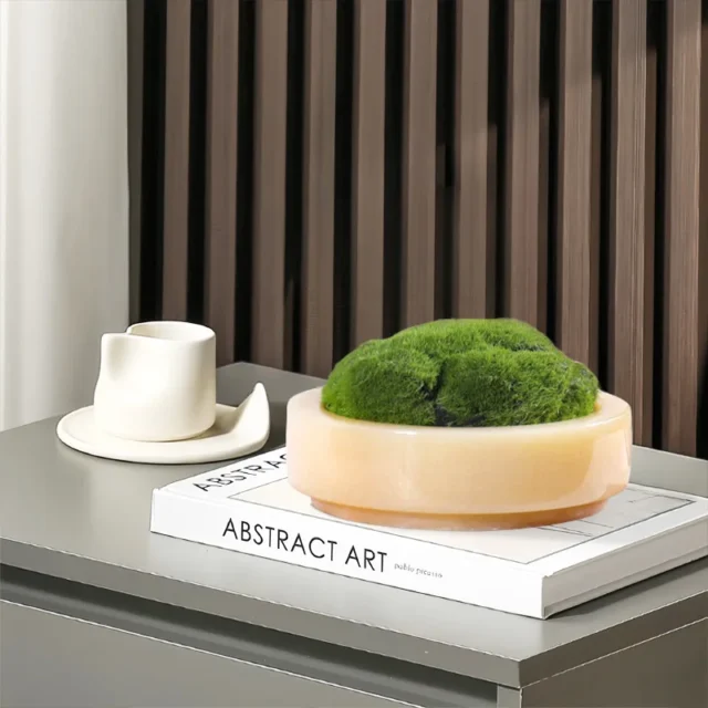 This elegant flower pot is more than just a planter – it’s a statement piece. Crafted from natural marble, it exudes luxury and sophistication, elevating any space you place it in. The sleek round shape complements modern interiors, while its natural stone texture adds an organic touch to your décor. Whether you use it to hold simulated moss, small plants, or flowers, it creates a calming and refreshing atmosphere.