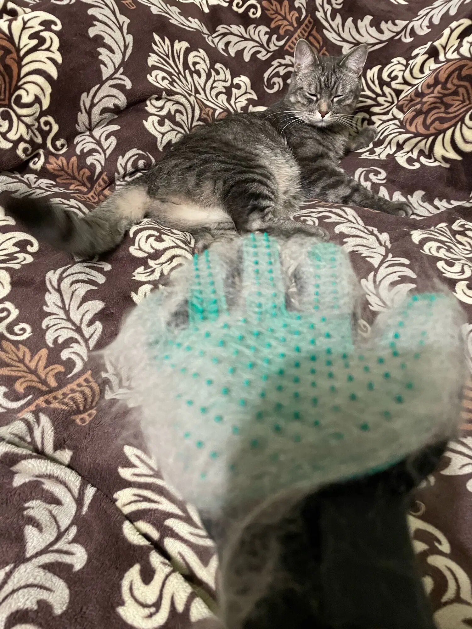 These gloves have been fantastic, especially for taming a stray cat who now enjoys being groomed with them.
