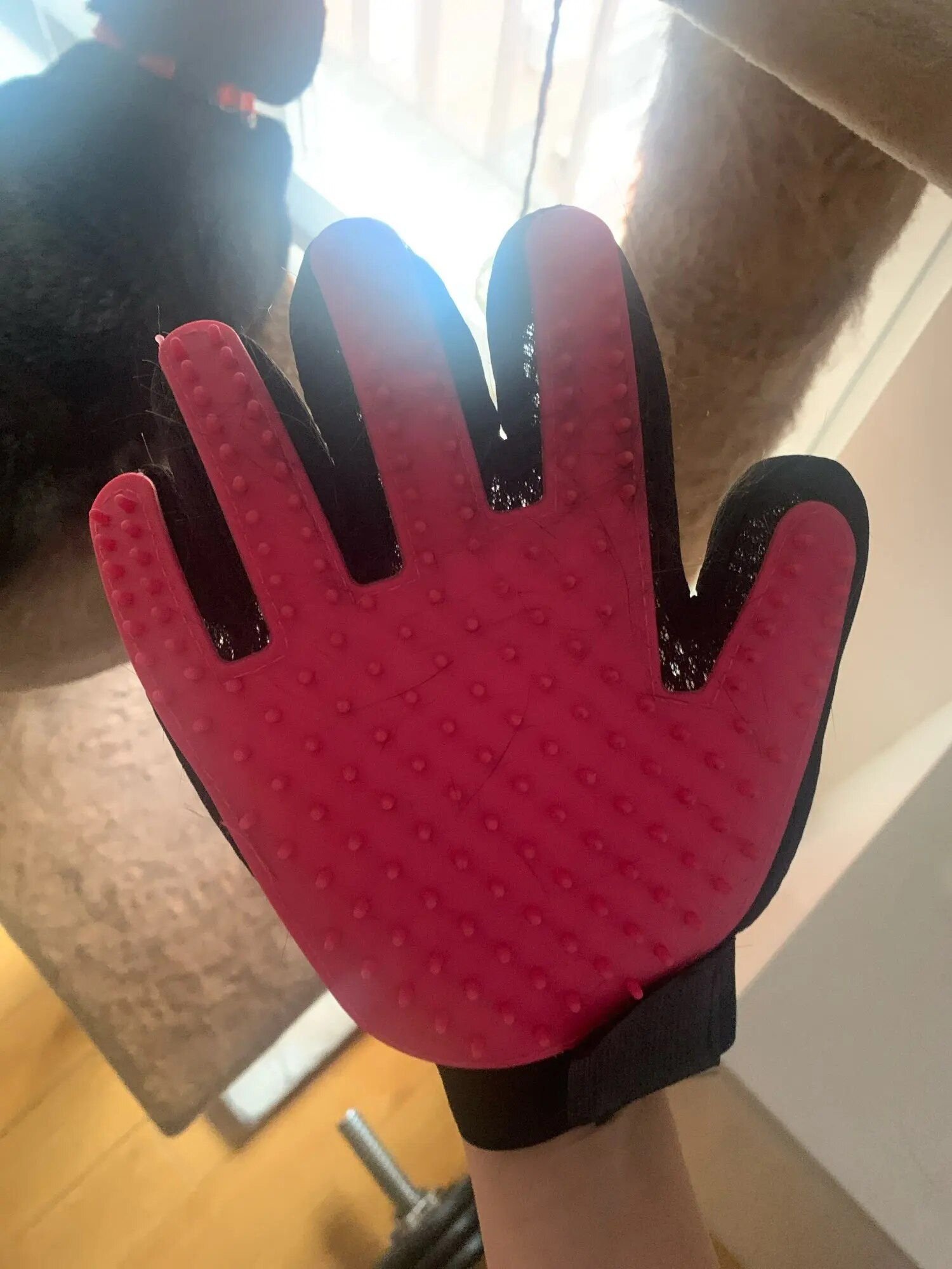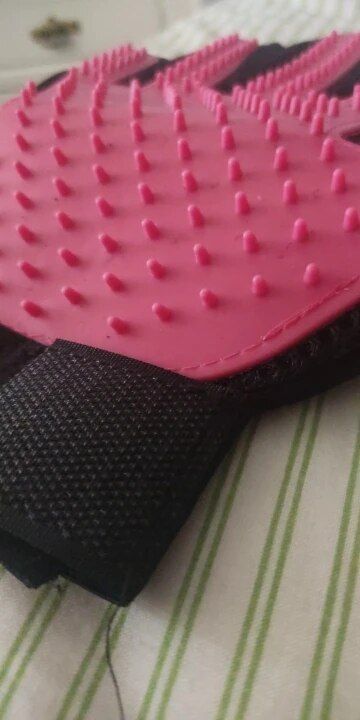 i absolutely love this grooming glove! it has completely transformed the way i groom my pet. the glove is comfortable to wear, and the soft bristles are gentle on my pet’s skin. it effectively removes loose fur and dirt, leaving my pet’s coat looking clean and shiny. my pet used to resist grooming, but now they actually look forward to it because of the gentle massage the glove provides. it’s easy to clean; the hair comes off effortlessly, and it’s ready for the next use in no time. i’ve noticed a significant reduction in the amount of fur around the house, which is fantastic. the glove is also great for bonding with my pet, making grooming sessions a positive experience. it’s well-made and durable, showing no signs of wear even after multiple uses. i highly recommend this grooming glove to anyone looking for an efficient and enjoyable way to groom their pets. it’s a fantastic product!