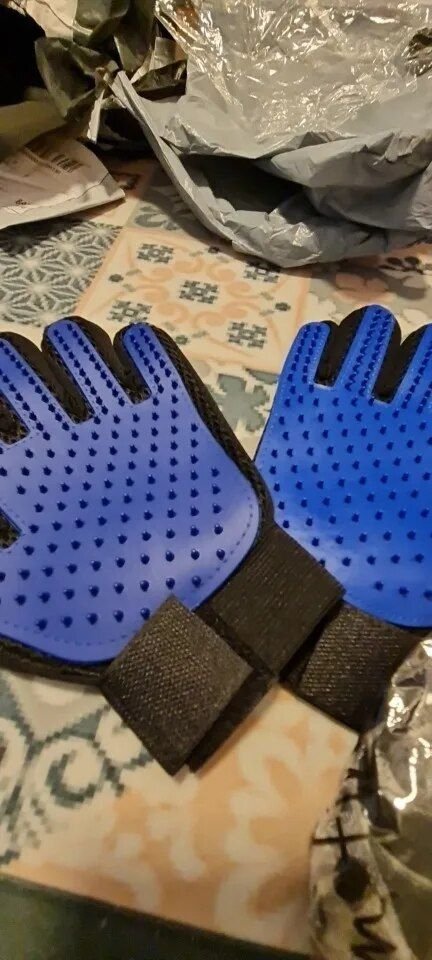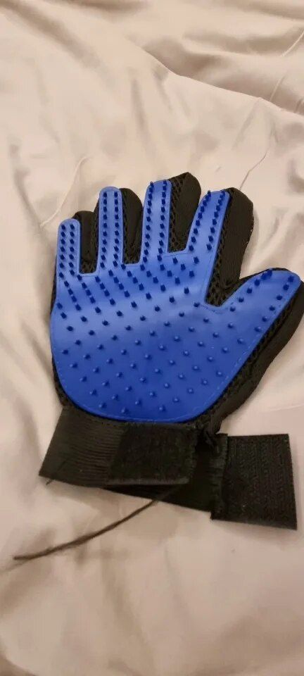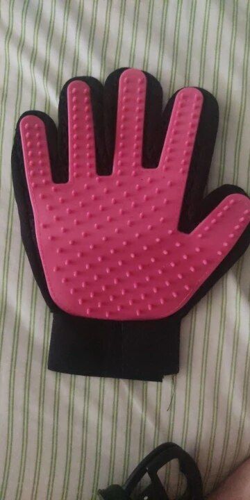 i recently purchased this grooming glove, and it has been a game-changer for my pet’s grooming routine. my pet used to dread grooming sessions, but now they actually enjoy it. the glove fits perfectly on my hand, making it easy to maneuver. the soft, silicone bristles do an excellent job of removing loose hair and dirt without causing any discomfort to my pet. it also provides a nice, gentle massage that my pet absolutely loves. the glove is easy to clean; the hair just peels right off, and a quick rinse is all it takes to get it ready for the next use. i've noticed a significant decrease in the amount of fur around the house, which is a huge plus. this glove has made grooming sessions quick, easy, and enjoyable for both me and my pet. highly recommend it to all pet owners!