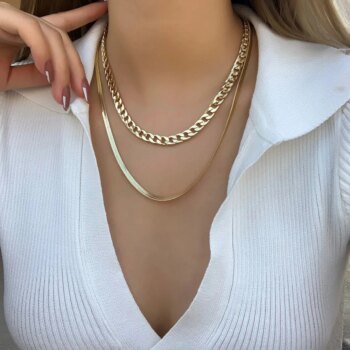 18K Gold Plated Stainless Steel Double Layer Cuban Chain Necklace