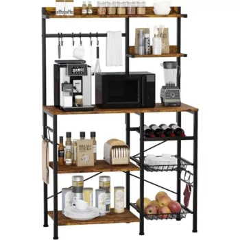 5-Tier Kitchen Baker’s Rack with Wire Baskets and Wine Storage