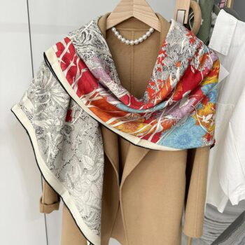 Luxury Silk Wool Pashmina Scarf – Elegant Natural Print