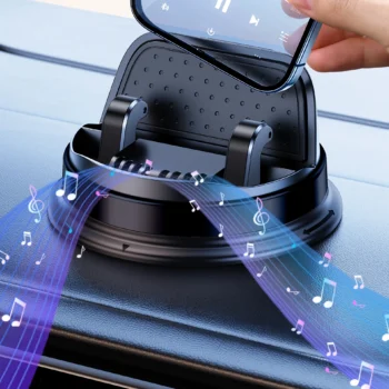 360° Rotatable Car Phone Holder with Auto-Clamp & Eyeglasses Storage