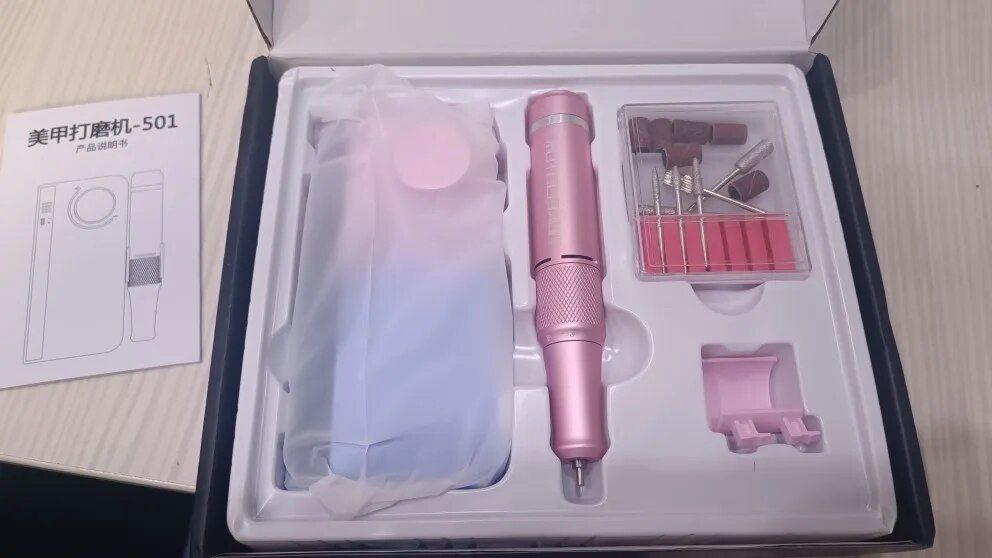 This drill is not only aesthetically pleasing but also powerful, portable, and comes with all the necessary bits for continuous use. It's a must-have for efficient and stylish nail care.
