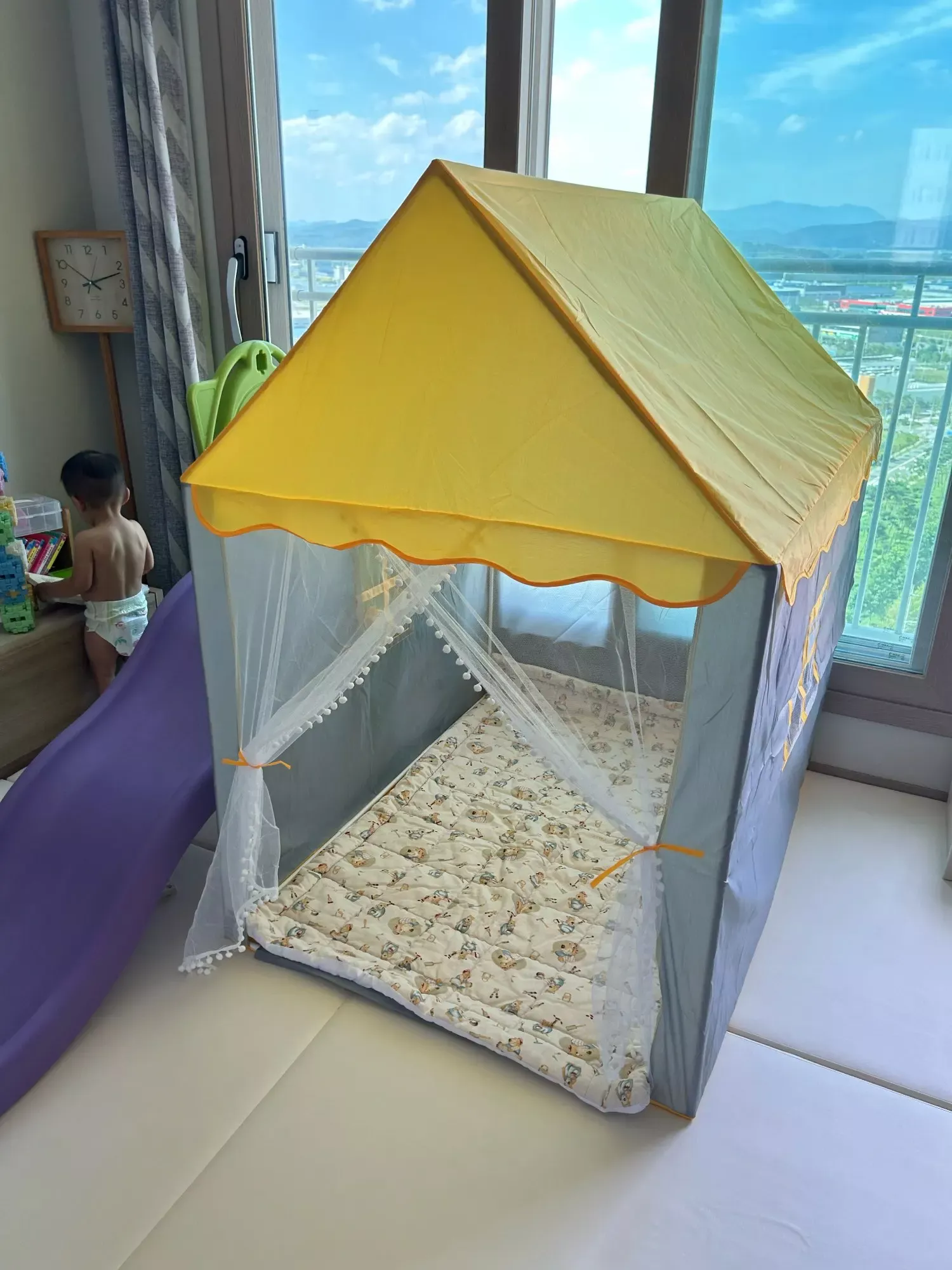 What sets our tent apart is its multifunctional design, ensuring that it’s more than just a play space. Whether your little one wants to pretend they’re in a grand castle, use it as a reading nook, or simply have a cozy spot to rest in, this tent meets all their needs. Its design ensures good ventilation, visibility, and most importantly, it guarantees an enjoyable playtime experience. Place it indoors during colder months or take it outside on sunny days – it’s versatile and durable!