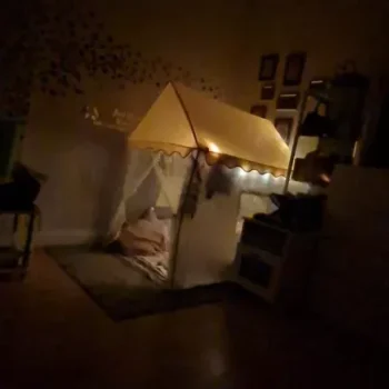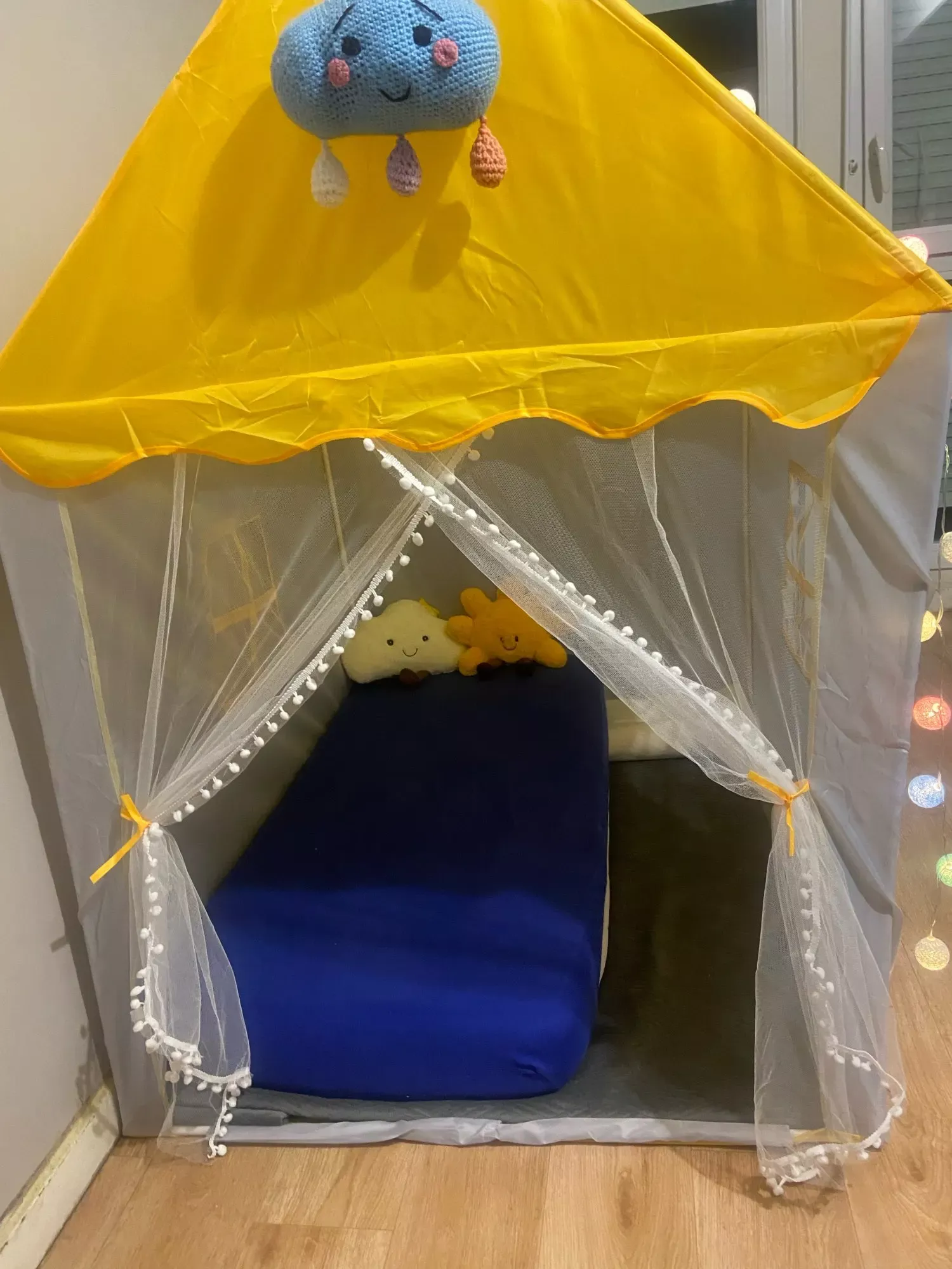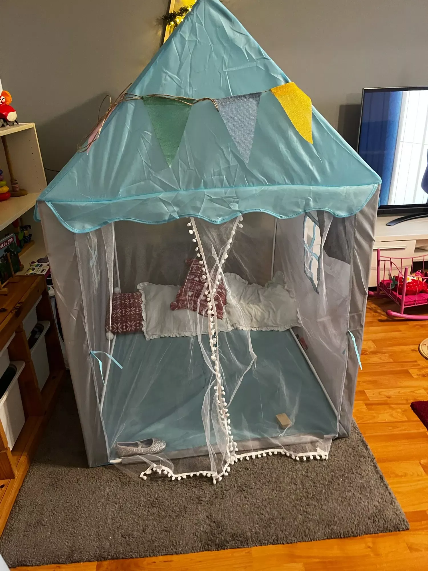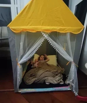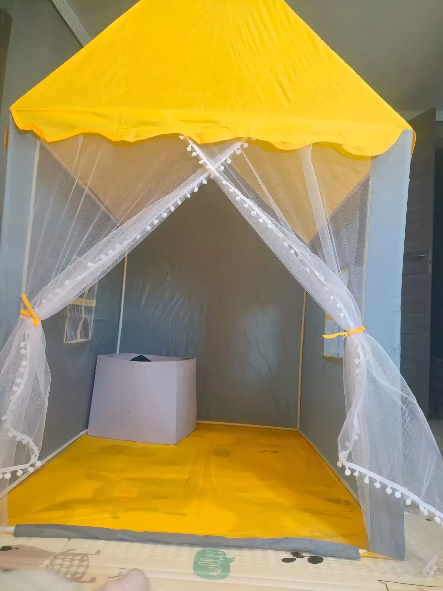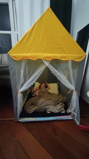 What a joy this play tent has been for our family! It's the perfect size for my three kids, offering them a vast space to let their imaginations run wild. The design is both functional and enchanting - the windows provide great ventilation and the curtained entrance is just adorable. It's amazing how it's become a versatile space - from a fortress in an epic battle to a calm spot for afternoon storytime. The fabric is durable and breathable, which is essential for us since we love setting it up outdoors. Assembly is a breeze, and it's so easy to move around or store away. It's not just a toy; it's a wonderful addition to our children's daily play and has even become a beautiful, whimsical accent in their room. Truly a delightful purchase that's brought so much joy and creativity into our home.
