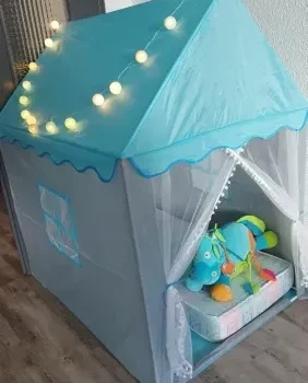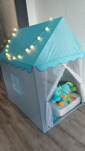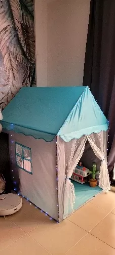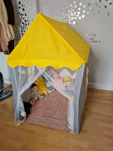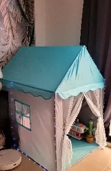 I've been on the lookout for the perfect play tent for my children, and I finally found it! This tent is not only roomy, allowing my kids and their friends to play comfortably, but it also looks fantastic in our playroom. The two small windows are a clever touch, ensuring fresh air circulates while they're lost in their fantasy worlds. It’s also incredibly durable - we've had it both in the garden and the living room, and it holds up beautifully. The best part? It assembles in a flash, making it a hassle-free addition to our home. It's more than a play area; it's a magical space where my children read, play, and even take their afternoon naps. It's been an absolute hit for playdates and has become a charming decor element in our home.
